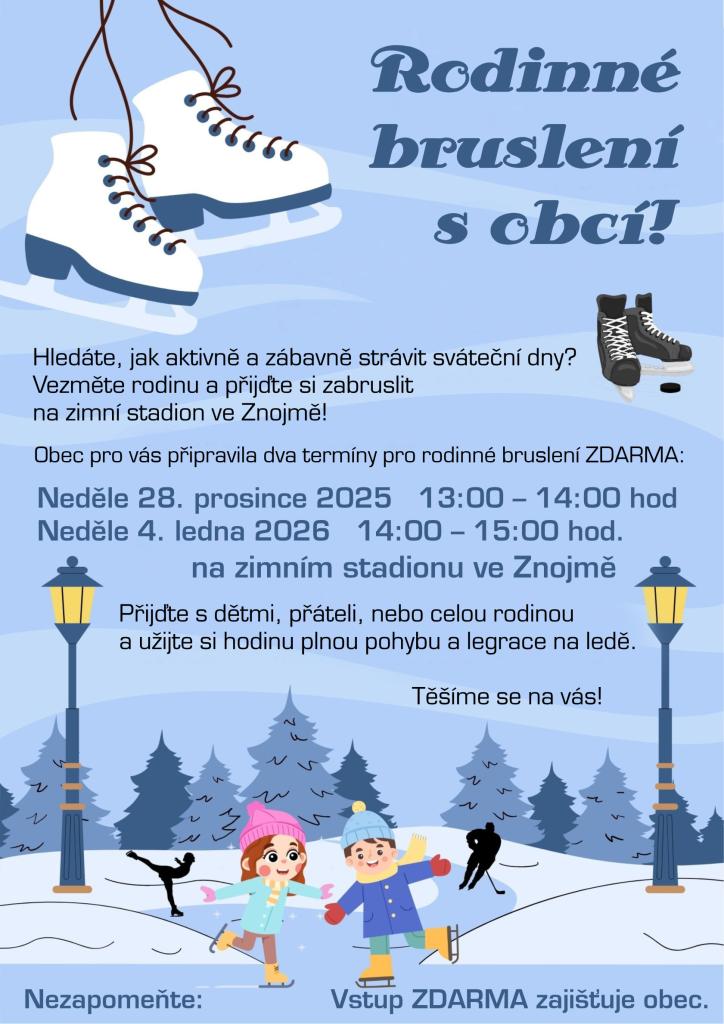 Rodinné bruslení dne 28. 12. 2025 od 13:00 - 14:00 hodin.
