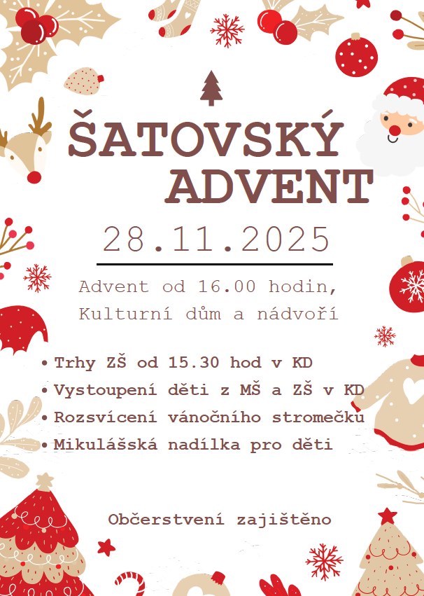 Zve Vás na Šatovský advent, který se koná 28.11.2025 na nádvoří a v KD Šatov