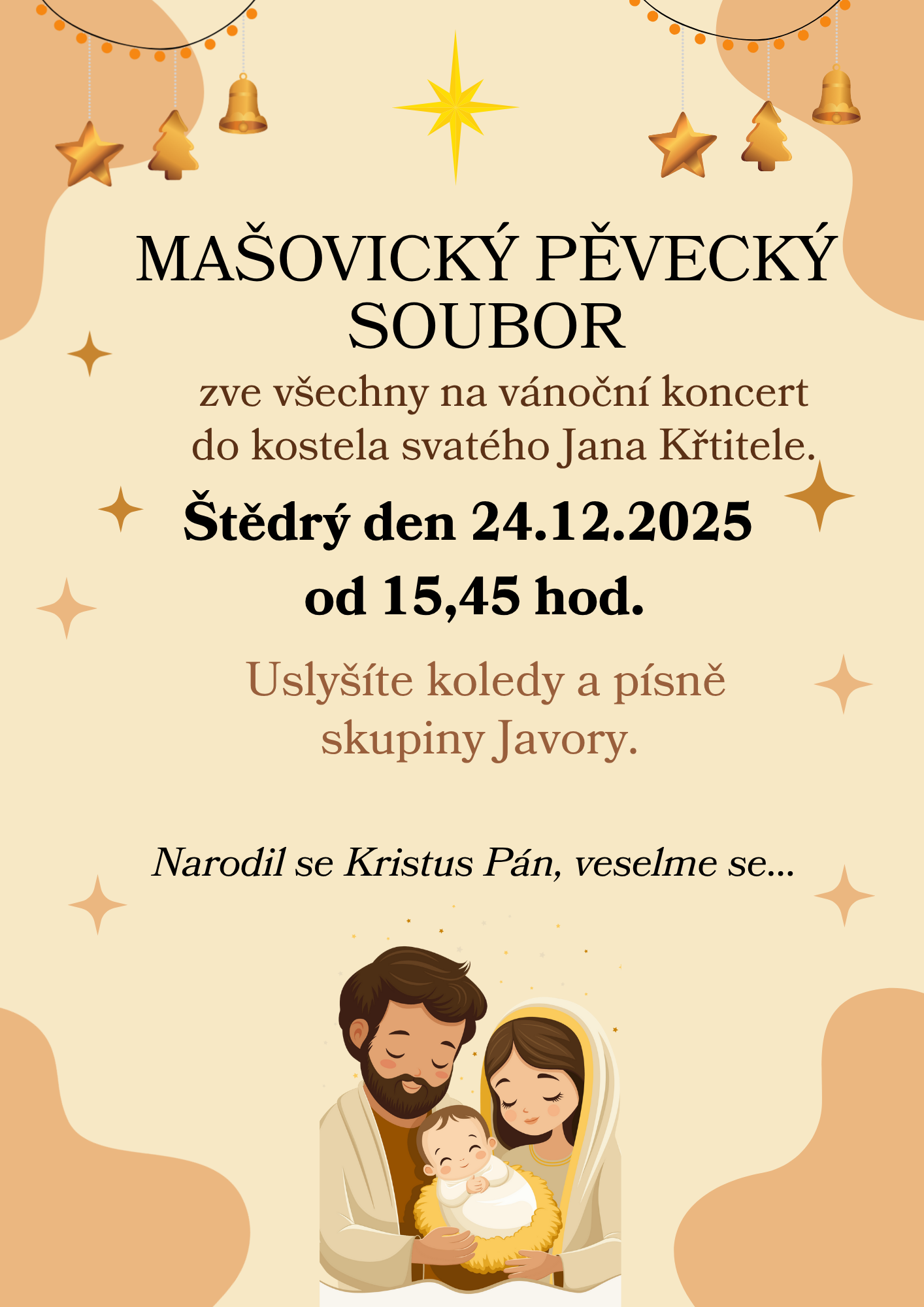 Mašovický pěvecký soubor zve všechny občany na vánoční koncert do kostela svatého Jana Křtitele.